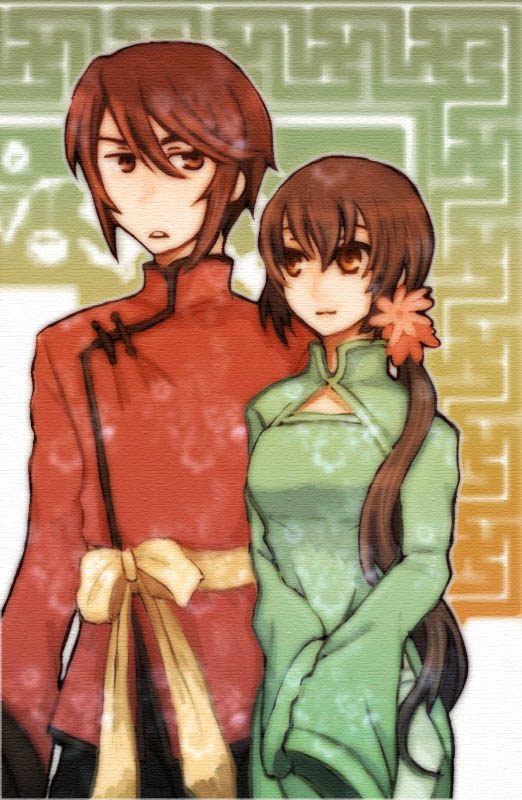 へたりあで香と越。両方とも本家未登場のキャラですが、何故かたくましい二人しか思い浮かばないです。眉毛が常に上がり気味な感じで。